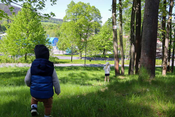 - Lesopark je skvělým místem k odpočinku – kromě hry si můžete užít klidnou procházku nebo nechat děti vydovádět na prolézačkách.